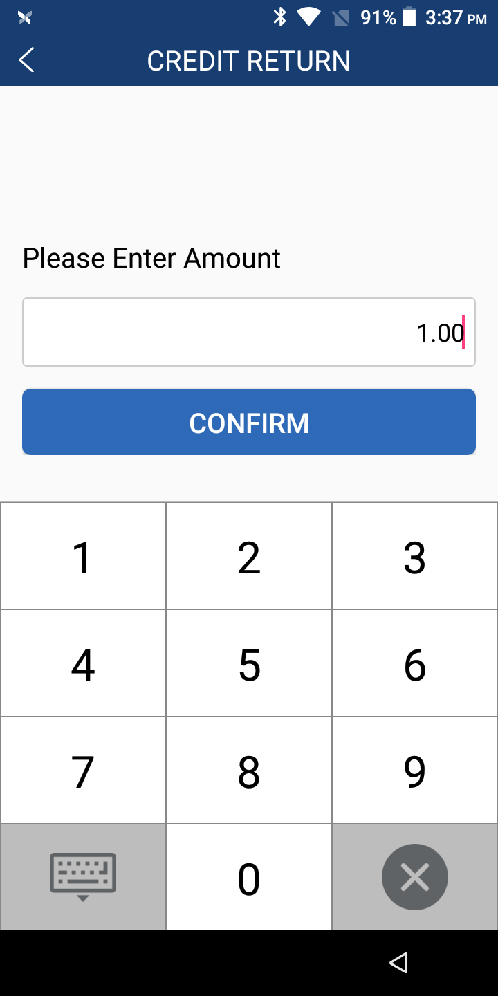 Enter the desired amount to return to the customer, and click the