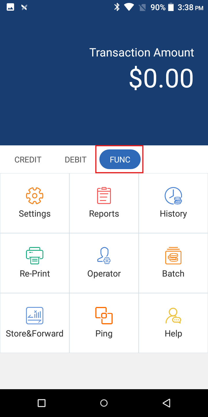 When opening the Vantiv app, it will take you to the main home screen, under the Credit tab.