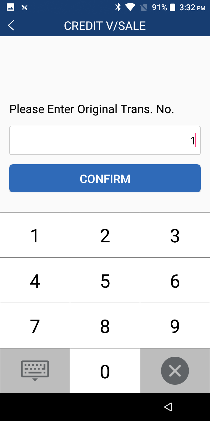 This will prompt for a Transaction Number. To see what the transaction number is, simply look at the receipt from the sale and it will be at the top right under Credit Sale as "Transaction #: " :